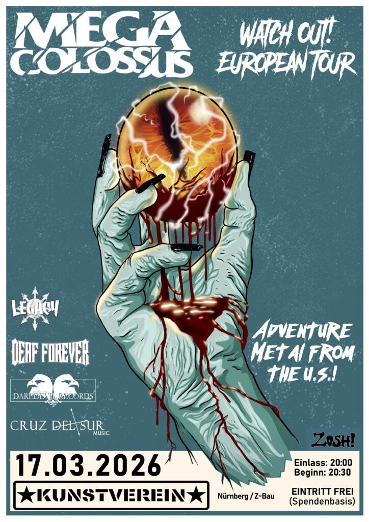 Die US-amerikanischen Heavy Metaller MEGA COLOSSUS hüpfen im nächsten Jahr im Zuge ihrer « Watch Out! »-Tour für einige Konzerte über den großen Teich und besuchen zum ersten mal Nürnberg!